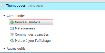 , cliquez sur le nom du thésaurus dans lequel ajouter un nouveau mot-clépuis, dans Commandes, cliquez sur la fonction